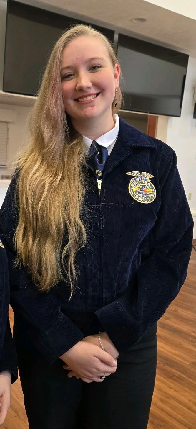 Elizabeth is also actively involved in Future Farmers of America (FFA) and agriculture, where she continues to grow her leadership skills, work ethic, and passion for learning. Her involvement shows her dedication to both personal growth and community impact.